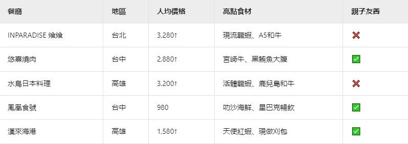 亮點:從高雄紅到台北的Buffet霸主,海鮮吧供應現剖生蠔與阿根廷天使紅蝦。親子亮點:互動棉花糖車與「迷你刈包DIY區」。價格:1,580元/人(午間)/ 1,880元/人(晚間)四、訂位攻略與促銷情報
