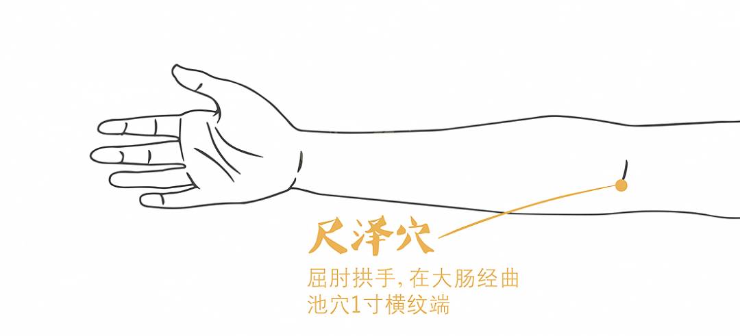 尺澤穴屬于手太陰肺經穴,可緩解調理咳嗽、氣喘、咽喉腫痛。位于人體肘橫紋中,肱二頭肌腱橈側凹陷處,微屈肘取穴,每次3分鐘,每日兩次。